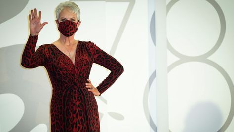 Dazu kombinierte sie einen farblich passenden Mund-Nasen-Schutz aus demselben Stoff. Die Schauspielerin hielt eine emotionale Rede. Jamie Lee Curtis ist in Venedig weil sie in dem Film Halloween Kills mitspielt der Fortsetzung der erfolgreichen Halloween-Reihe.