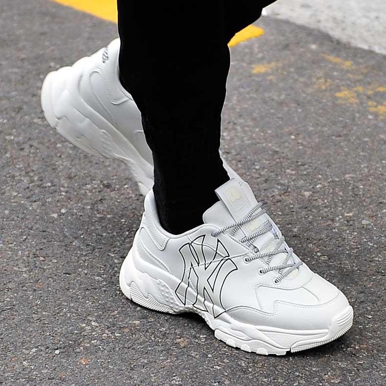 韓國連線代購 附發票 Mlb 洋基老爹鞋新款mlb米奇yankees Ny字白色全黑厚底增高鞋 蝦皮購物